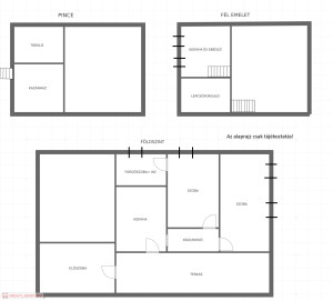 - legfelső szinten egy különálló, nagy hálószoba
