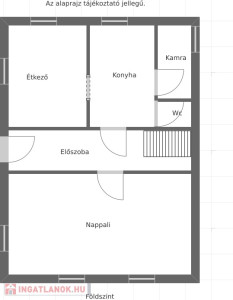 A földszinten kialakításra került egy hatalmas, tágas, világos nappali, előszoba, konyha, étkező, wc.