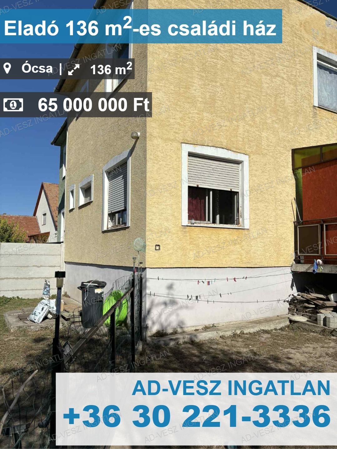 Ócsa központjához közel, 10perc sétára a vasútállomástól, és a buszmegállótól kínálunk eladásra egy 136m2-es, 3 szintes, 4 szobás családi házat.
